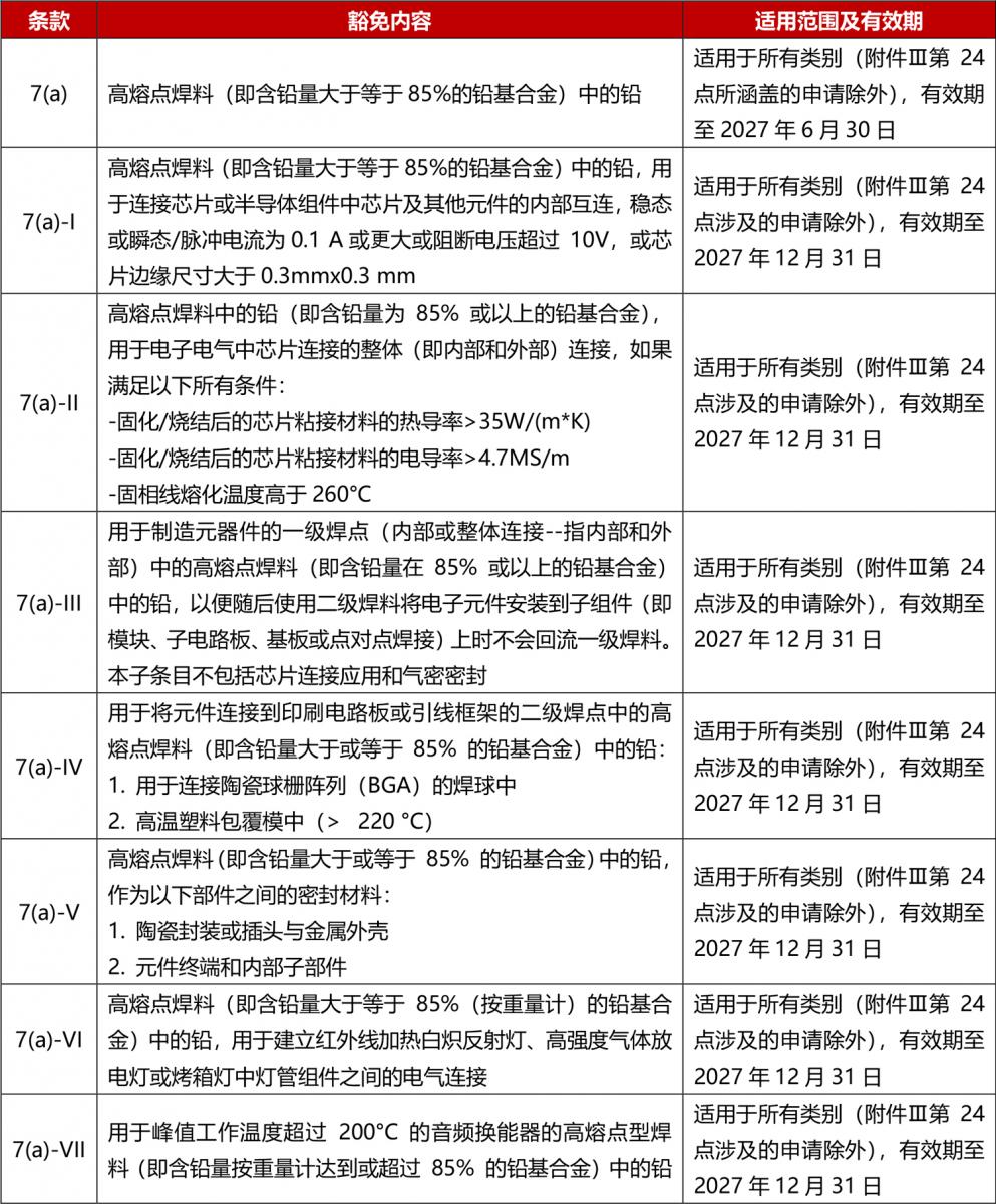 关于高熔点焊料,RoHS指令附录III的7(a)豁免条款拟替换为以下内容: